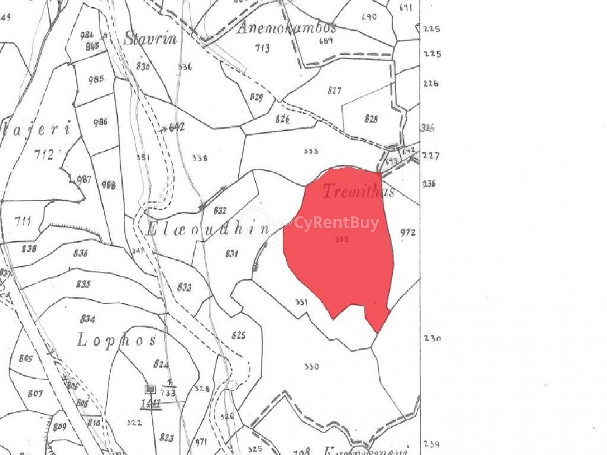 Agricultural field in Theletra Community of Paphos District. It is situated at a distance approximately 2.1 km north of the Community center and approximately 70 m southeast of Kathikas – Pano Akourdaleia road connection.